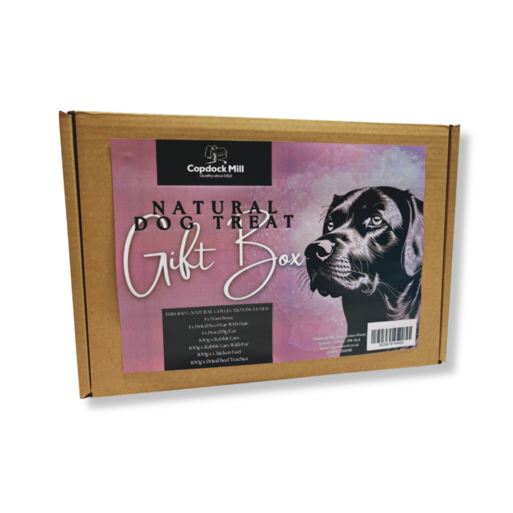 The Copdock Mill Natural Dog Treats Gift Box makes an ideal gift for your furry friend for their Birthday, Christmas or just because they have been an extra good Pooch!