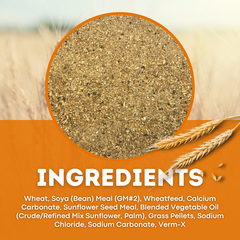 Wheat, Wheatfeed, Hipro Soya Bean Extract (GM#2), Calcium Carbonate,